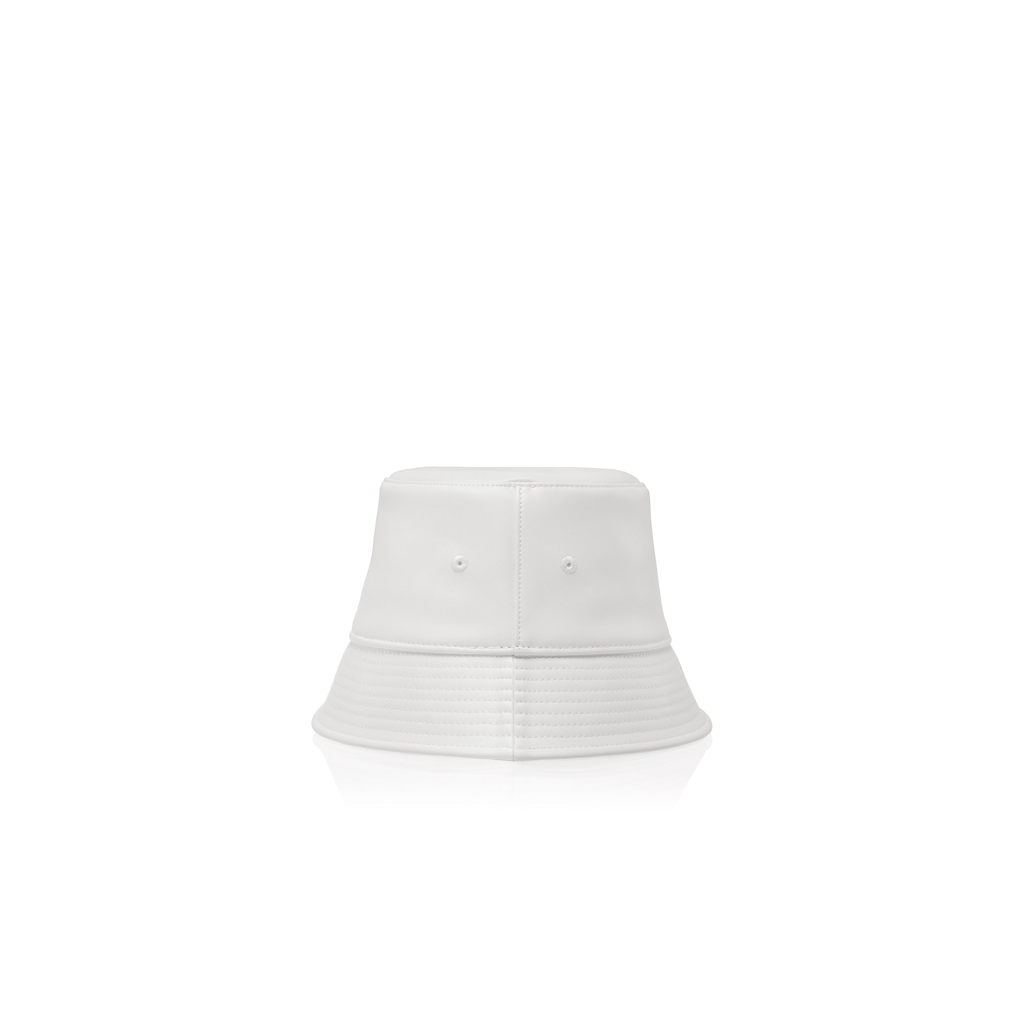 An Everyday hat for Everyone, inspired by our iconic Unisex Shopping Bag. Featuring our signature embossed logo, and structured, bucket silhouette with topstitched brim. Made from faux leather and lined with super-soft cupro. Hat is packaged in a drawstring bag with screen-printed logo.