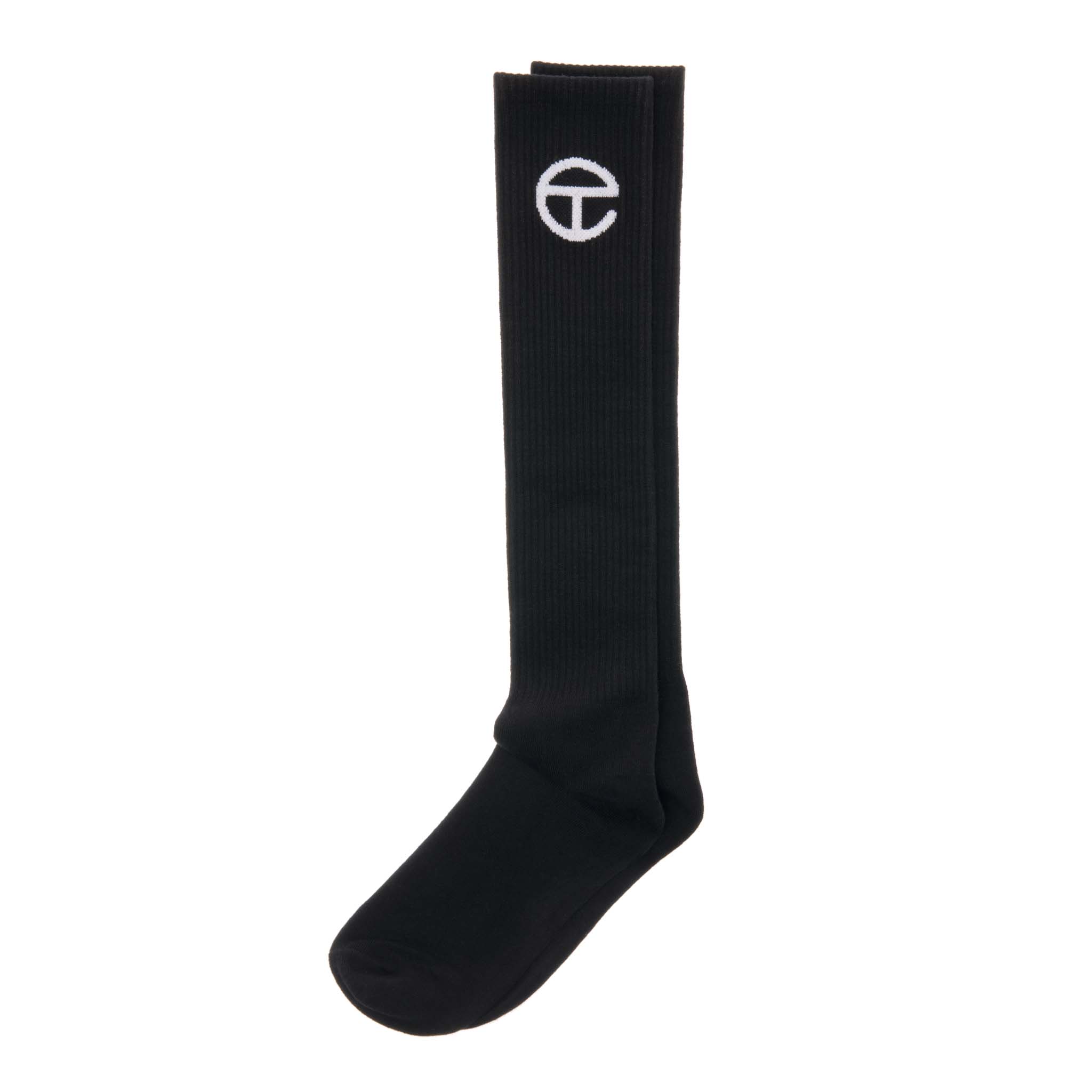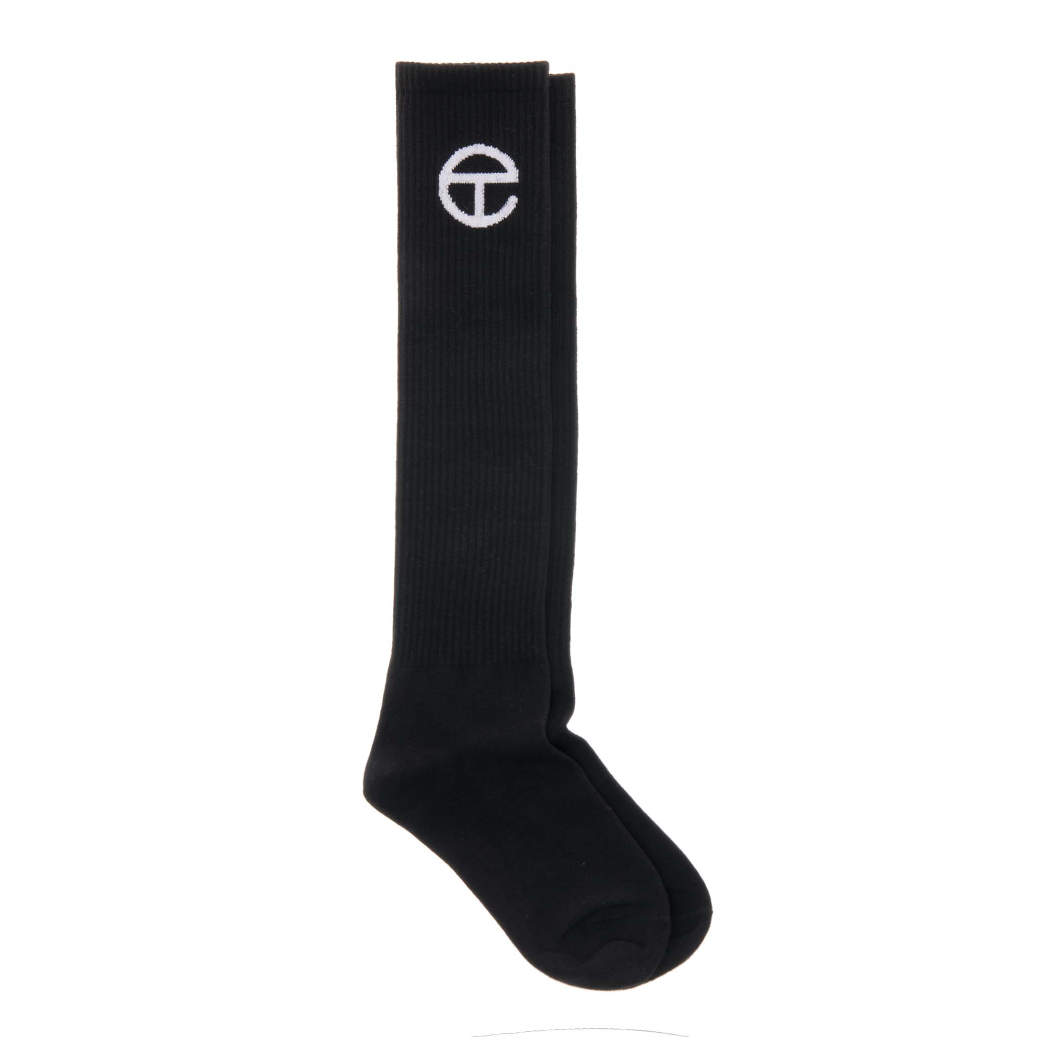 Knee-high stretch knit sock with jacquard Telfar logo.
