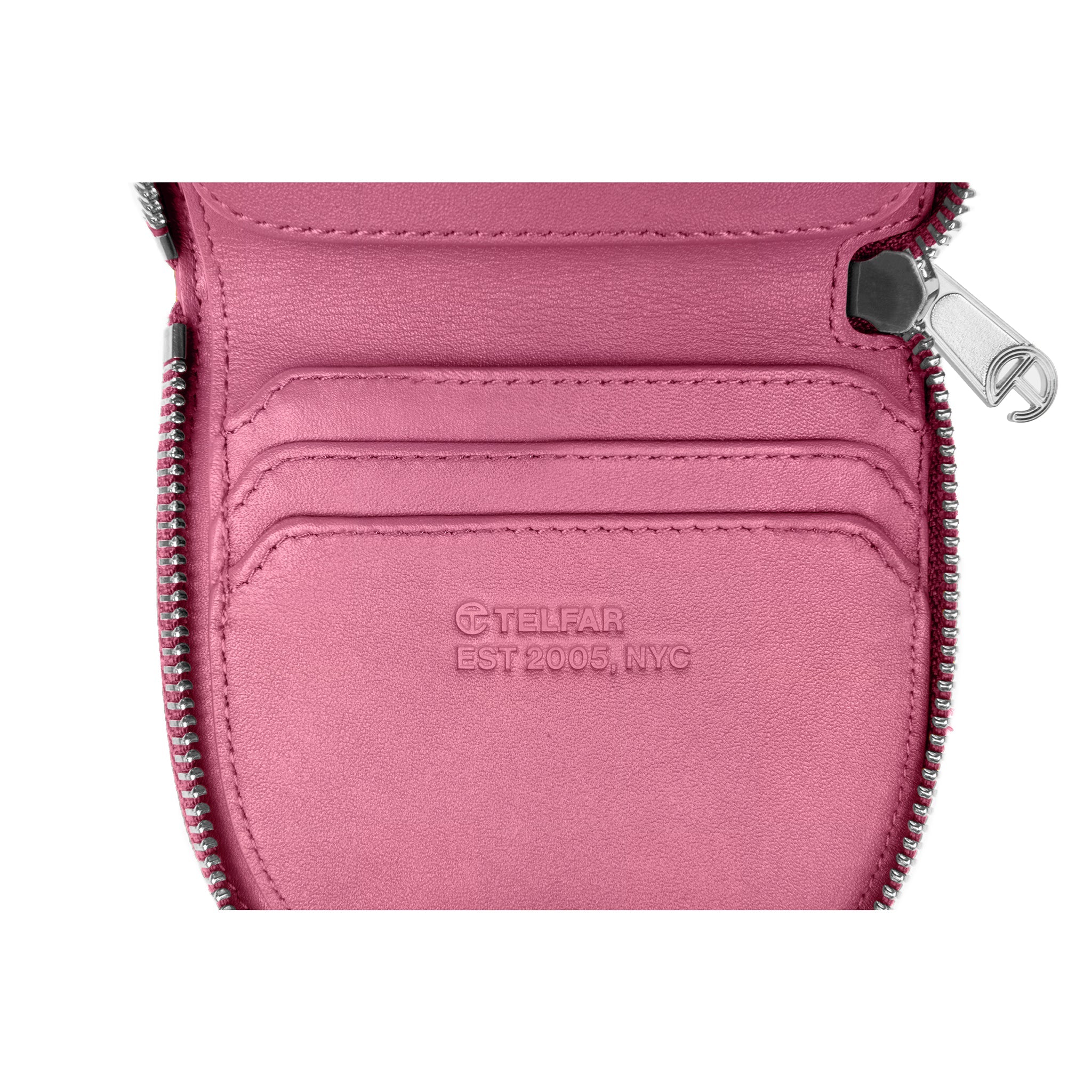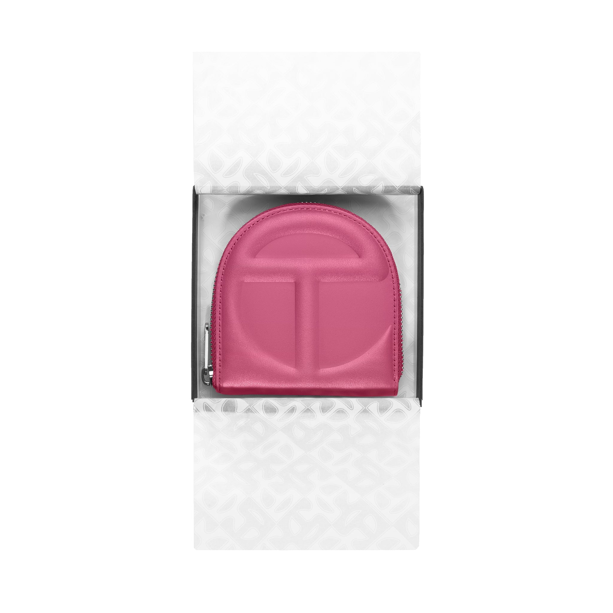 You kept asking us to make a wallet. We took our time and did it right: 100% top grain leather logo-embossed billfold wallet with logo zip, six card compartments, generous cash pocket and semi-circular shape make the TELFAR Wallet an instant icon.