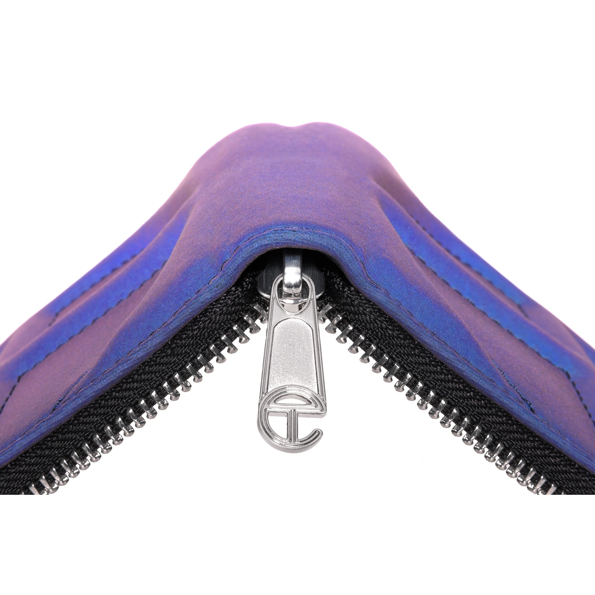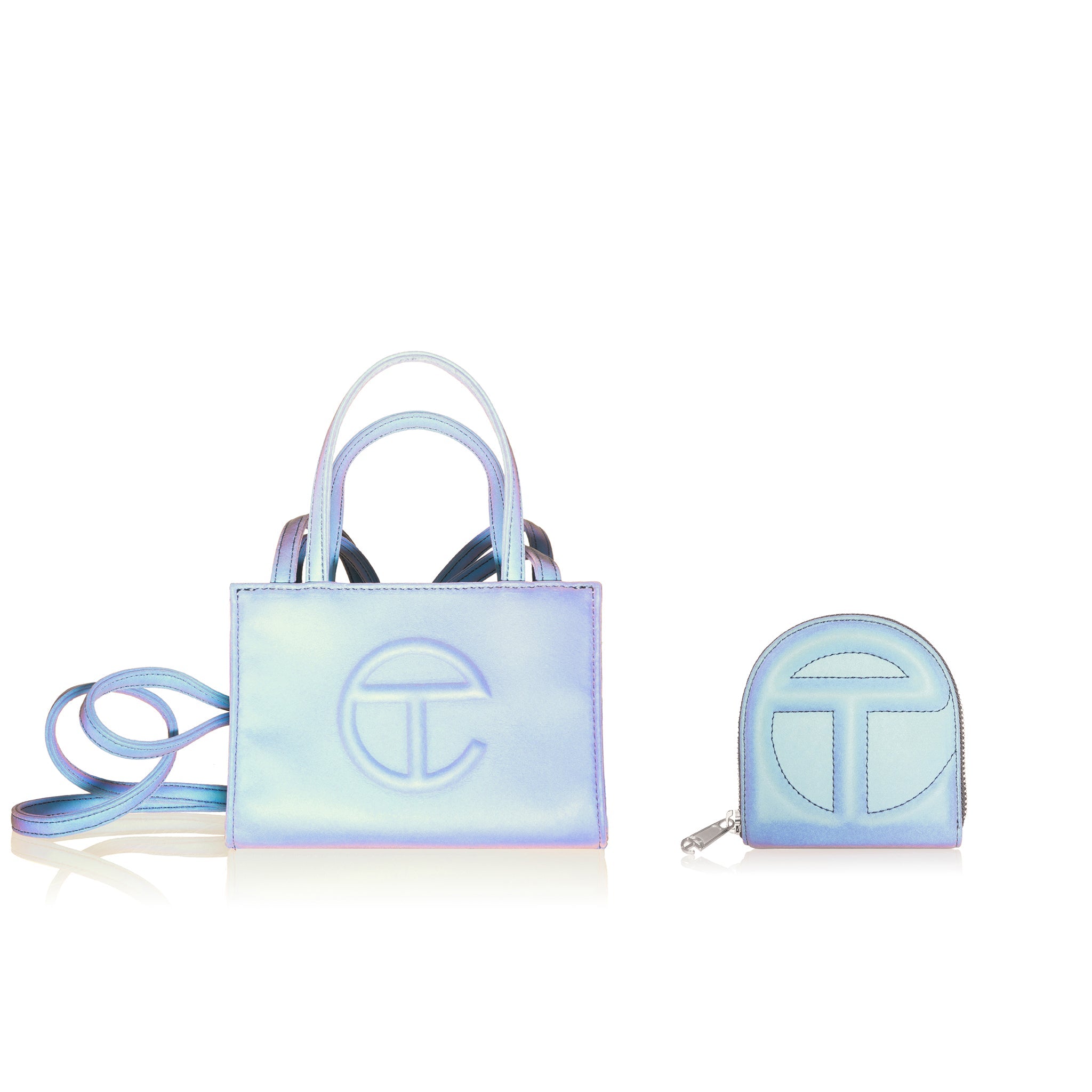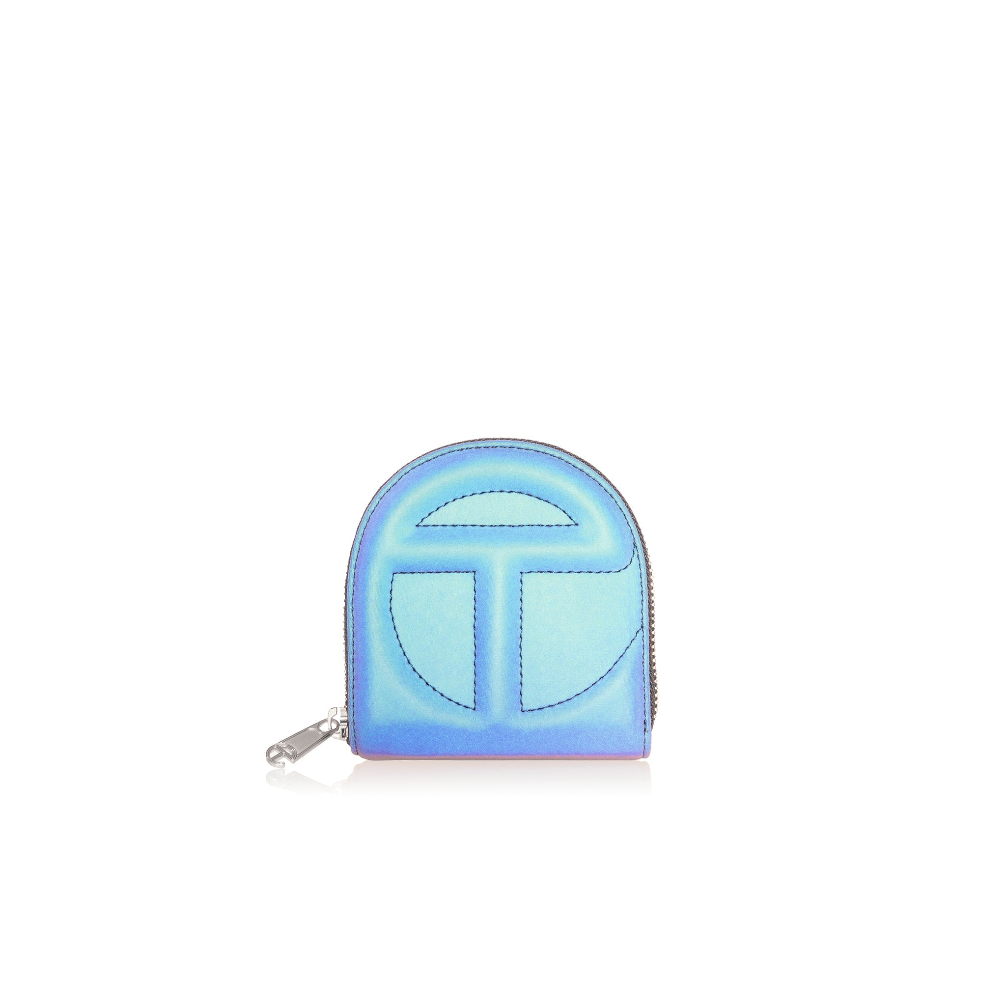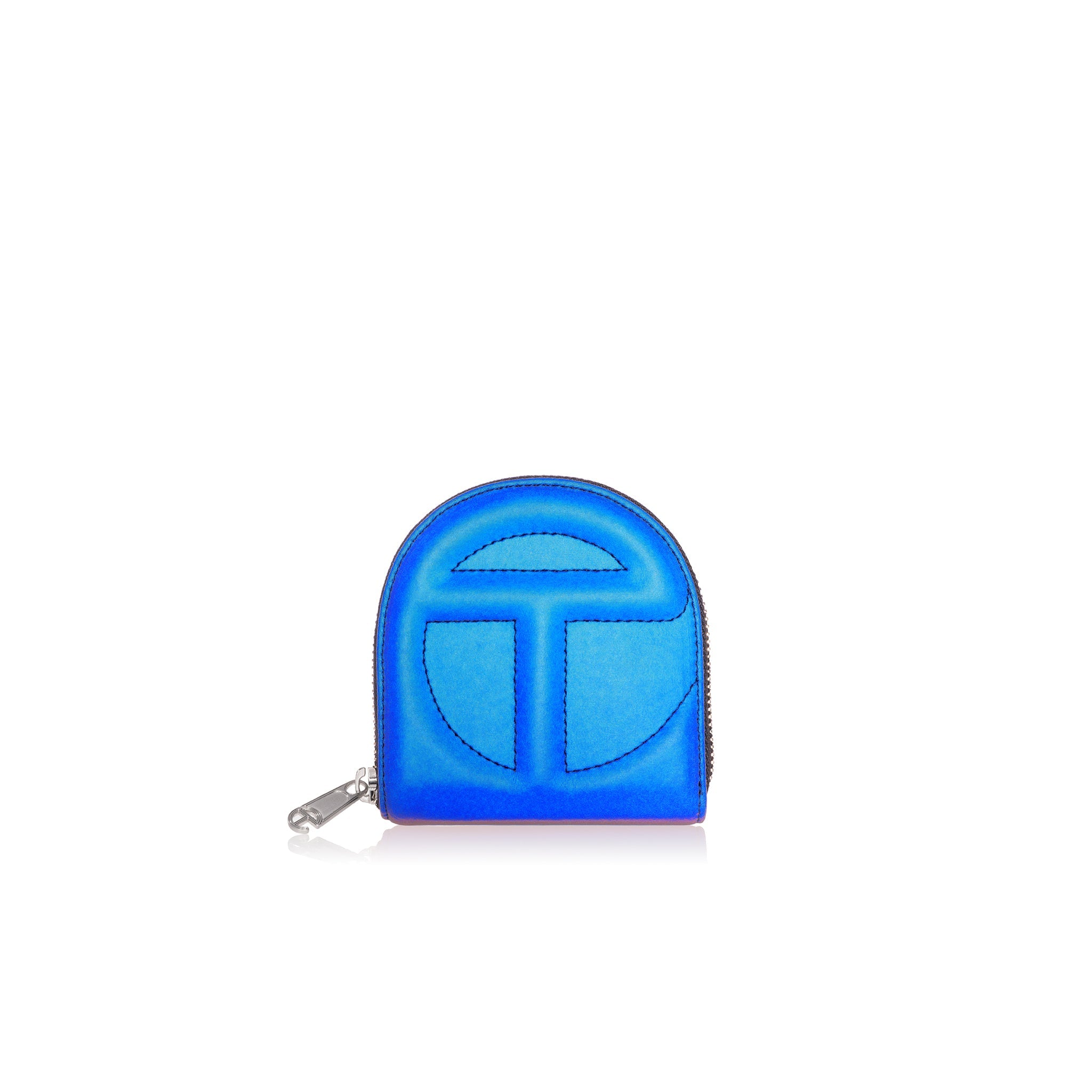 You kept asking us to make a wallet. We took our time and did it right: logo-embossed billfold wallet with logo zip, six card compartments, generous cash pocket and semi-circular shape make the TELFAR Wallet an instant icon.