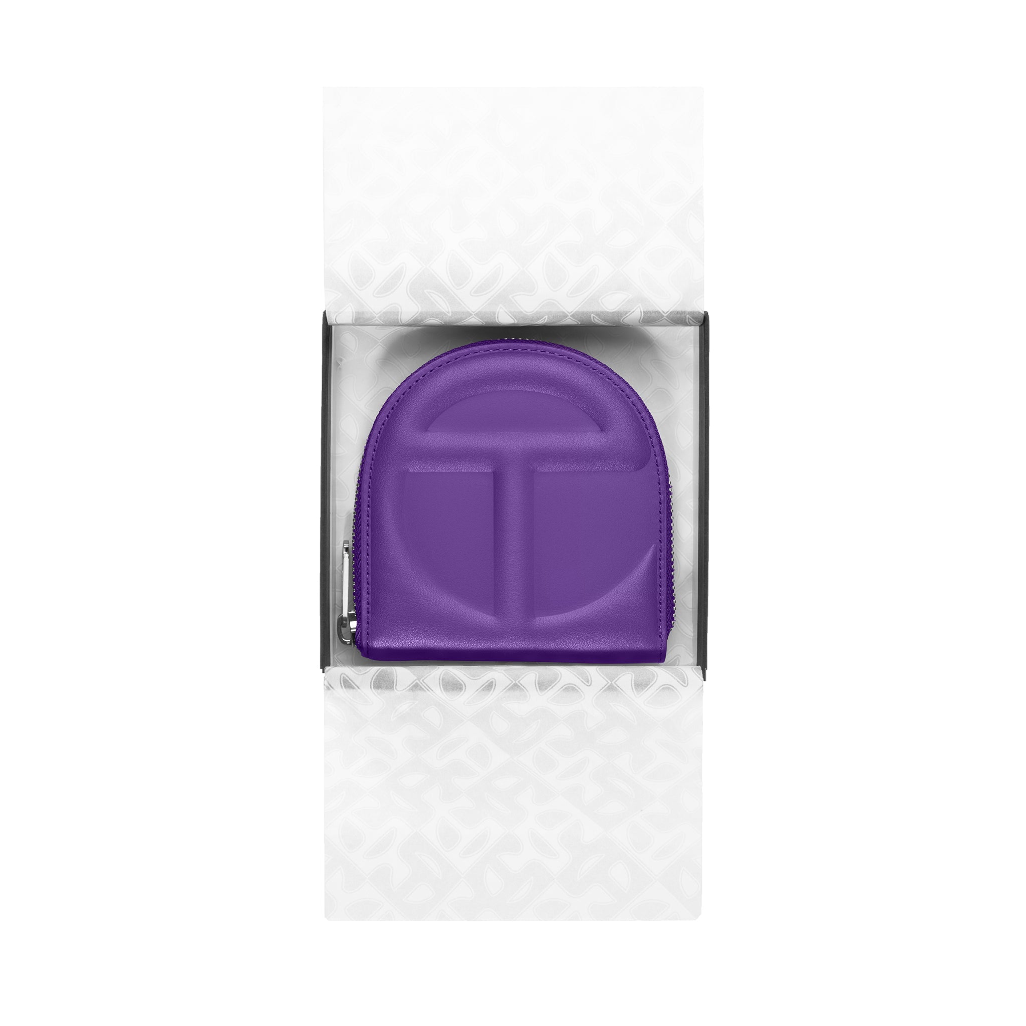 You kept asking us to make a wallet. We took our time and did it right: 100% top grain leather logo-embossed billfold wallet with logo zip, six card compartments, generous cash pocket and semi-circular shape make the TELFAR Wallet an instant icon.