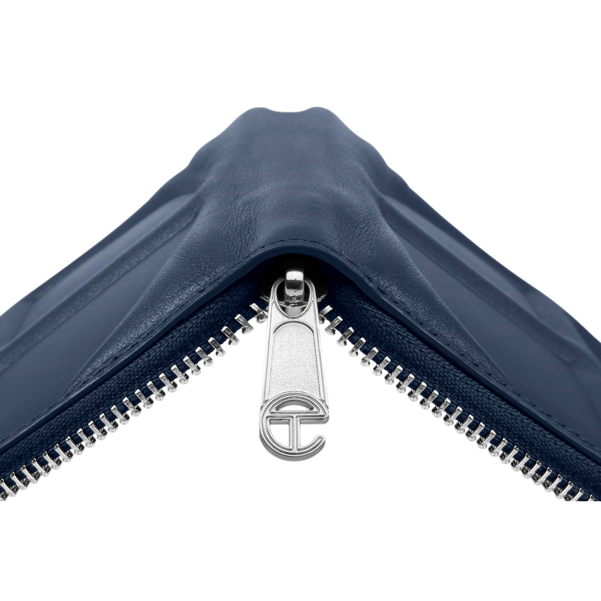 You kept asking us to make a wallet. We took our time and did it right: 100% top grain leather logo-embossed billfold wallet with logo zip, six card compartments, generous cash pocket and semi-circular shape make the TELFAR Wallet an instant icon.