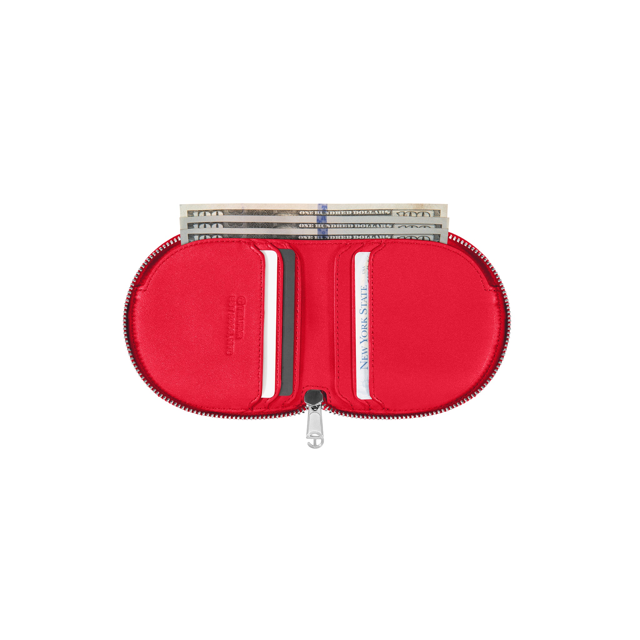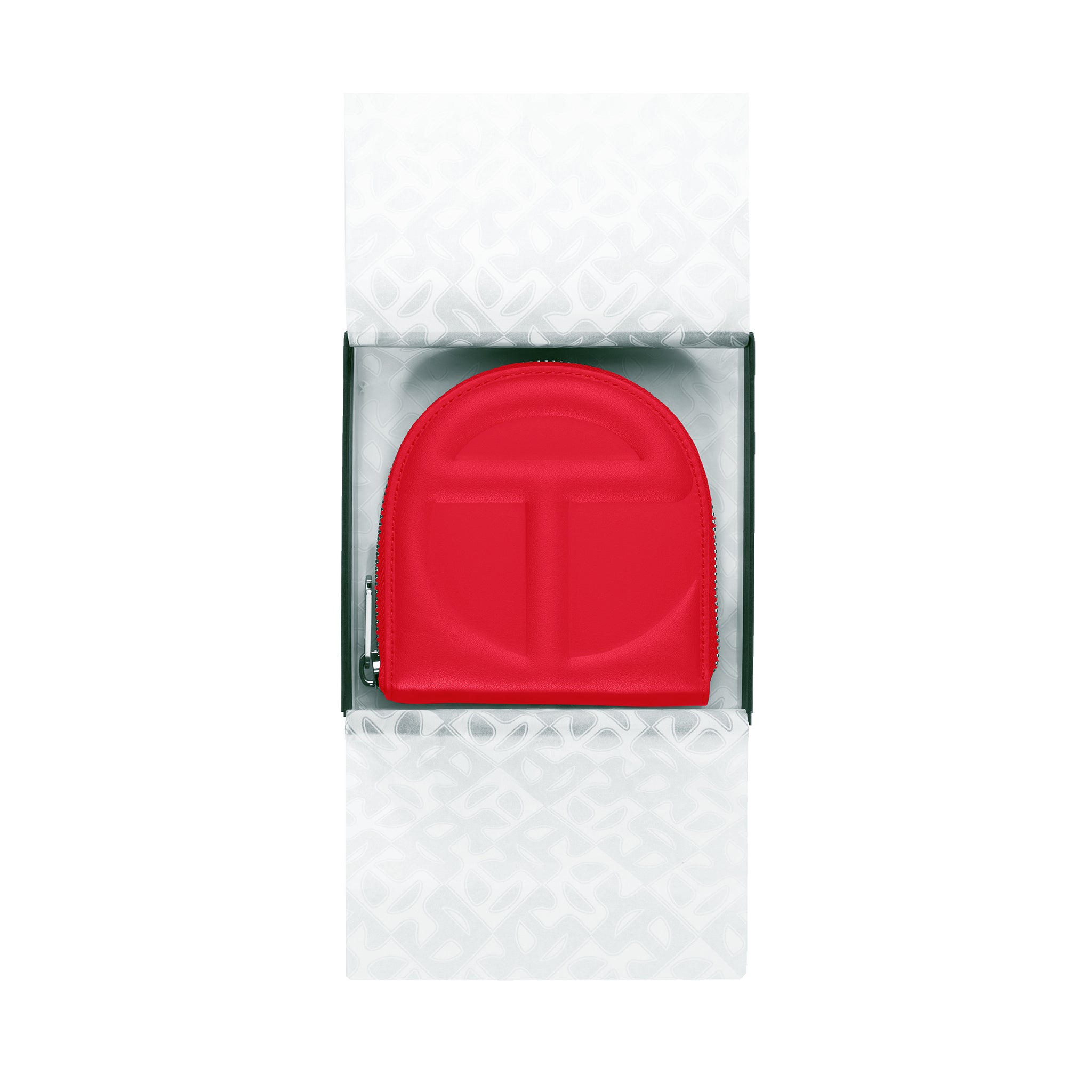 You kept asking us to make a wallet. We took our time and did it right: 100% top grain leather logo-embossed billfold wallet with logo zip, six card compartments, generous cash pocket and semi-circular shape make the TELFAR Wallet an instant icon.