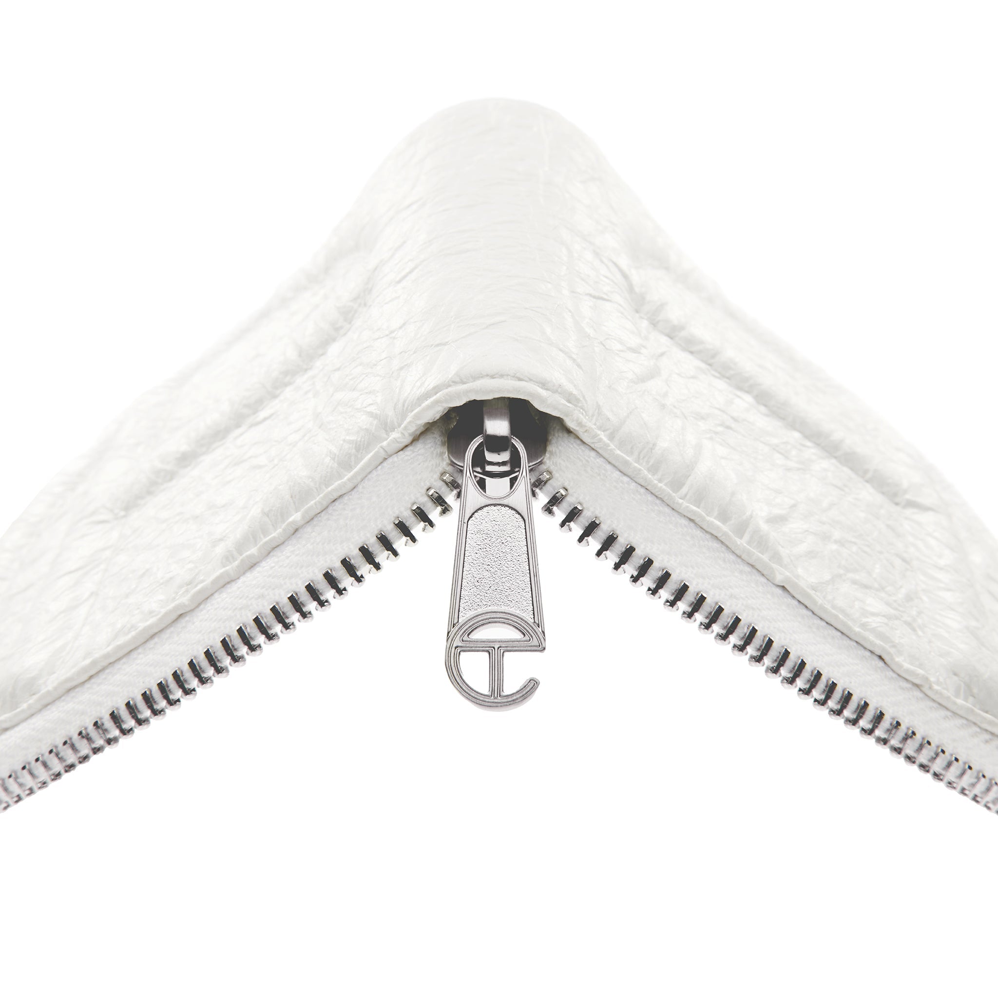 You kept asking us to make a wallet. We took our time and did it right: Made from 100% water-resistant Tyvek material for paper-like feel and twill interior lining. Featuring coverstitched embossed logo, six card compartments, generous cash pocket, semi-circular shape, and a logo zip making the TELFAR Wallet an instant icon.