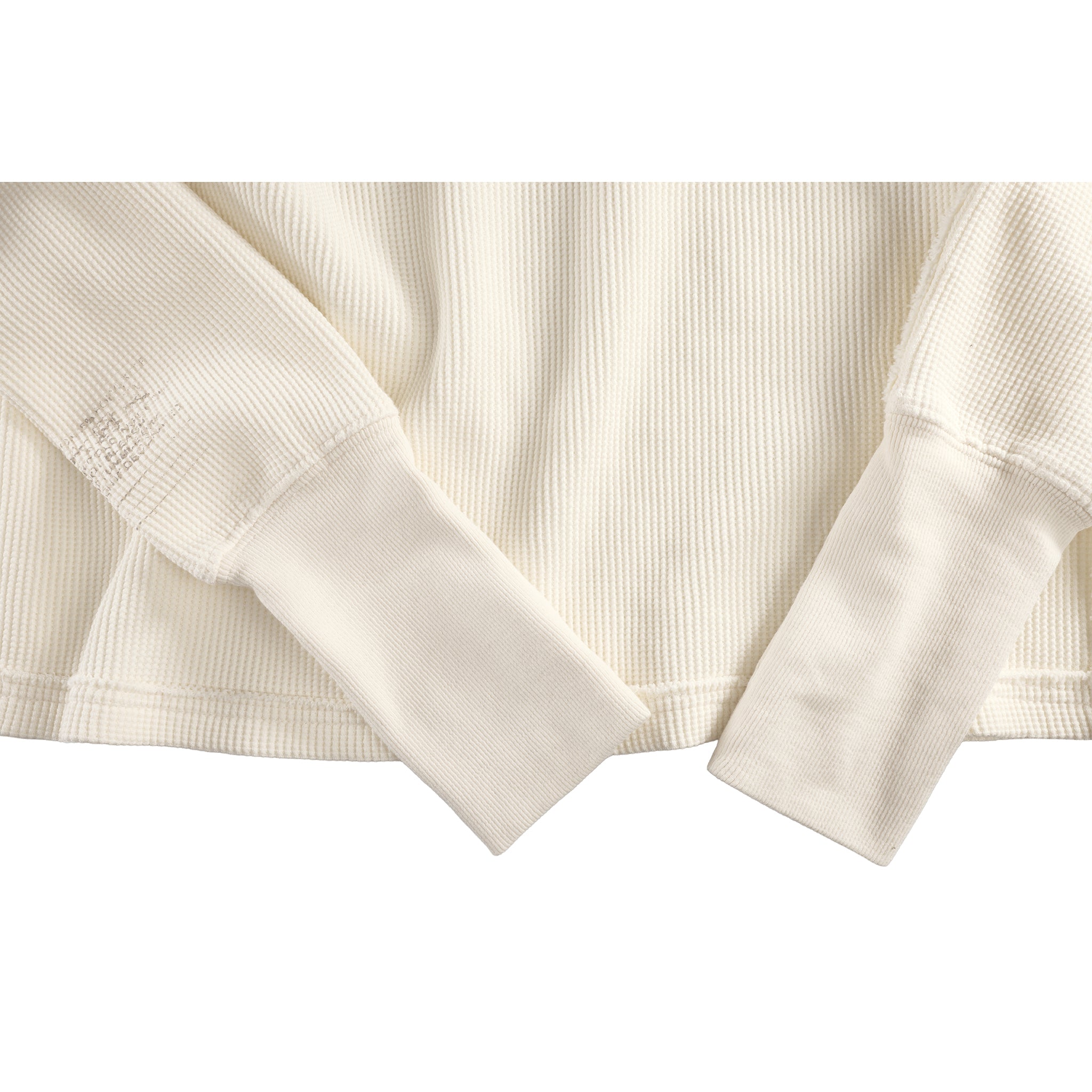 Our iconic thermal pull-over in extra-heavy waffle knit. Featuring long sleeves with ribbed cuffs, thumbholes to keep you warm and contrast edges with distressed seams.