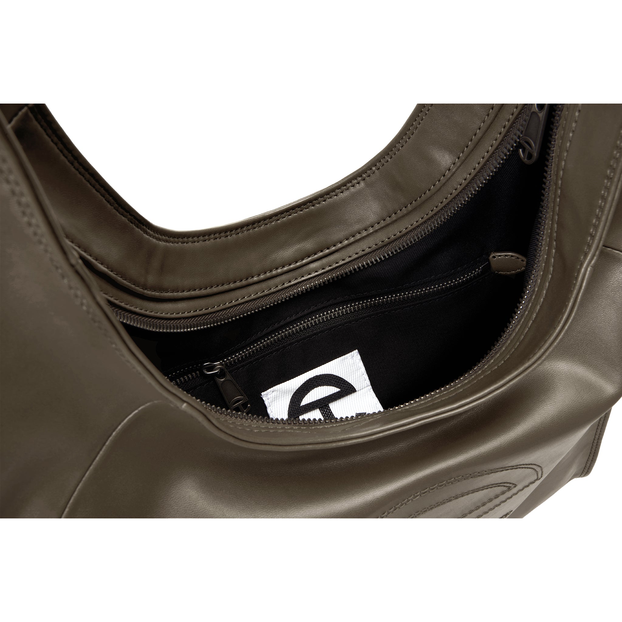Wear it over the shoulder or cross body. Features a twin zippered closure, embroidered signature logo, and footing studs. Lined interior includes deep slip pockets, interior zip and snap pockets, and as always— a hidden stash pocket. Fits a 13″ laptop.