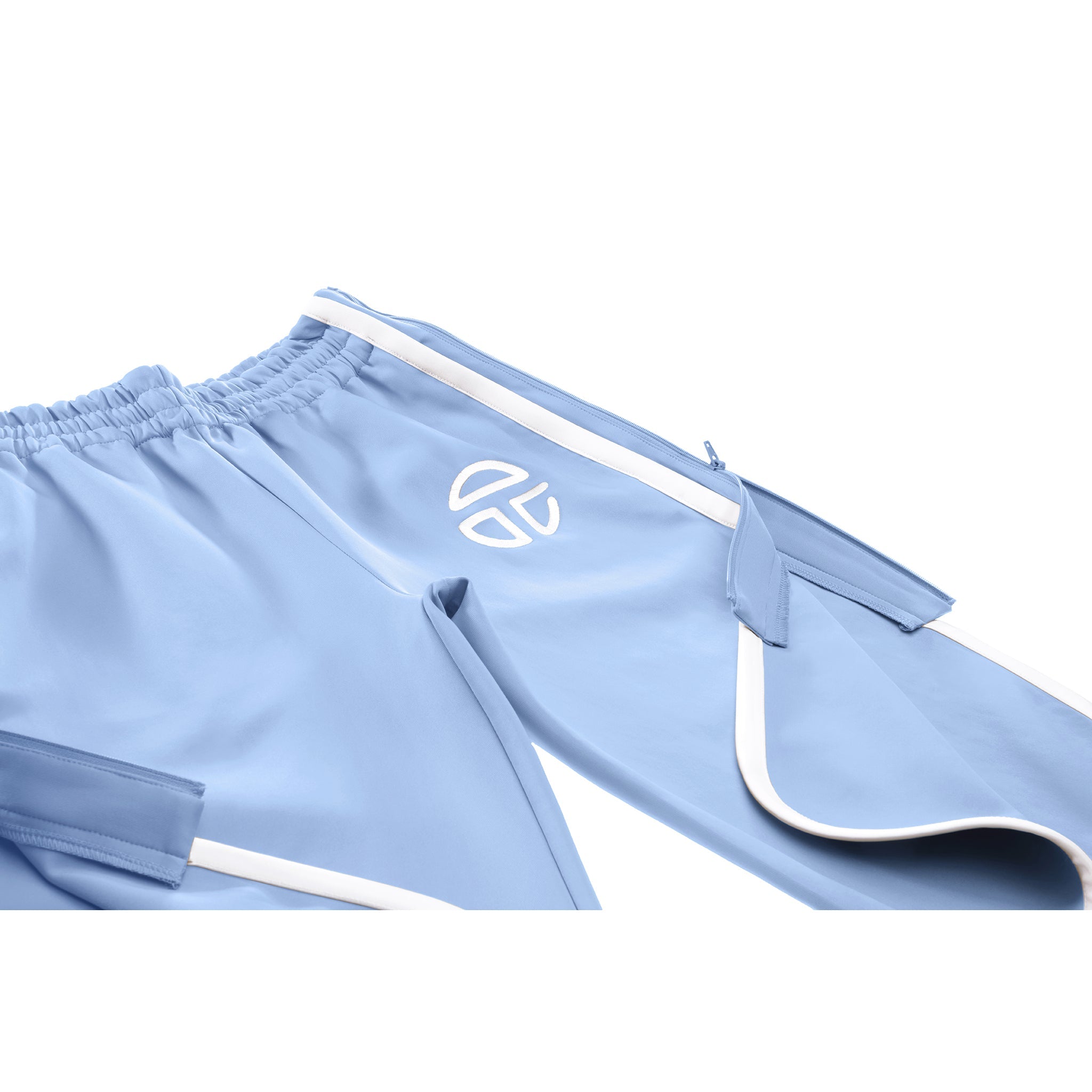 Knee-length track short featuring sculptural stripes, hidden zip pockets in front and back and athletic logo embroidery on the hip.