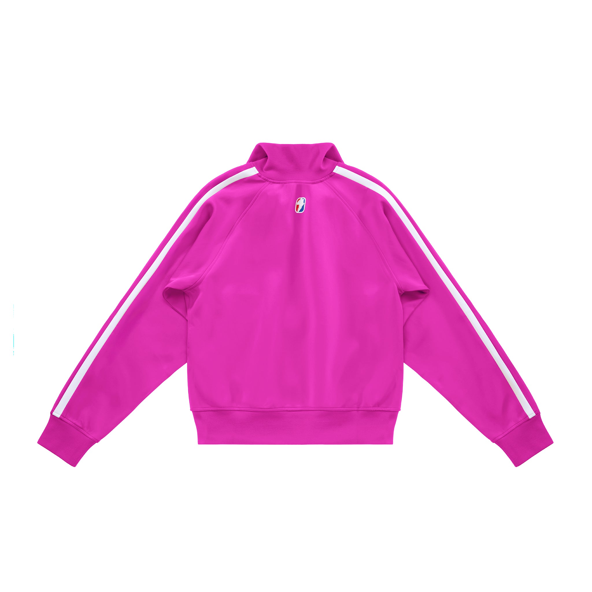 Classic track jacket featuring sculptural stripes on the sleeves, athletic logo embroidery on the chest, logo zipper pull, welt pockets, ribbed collar, cuffs and waistband.