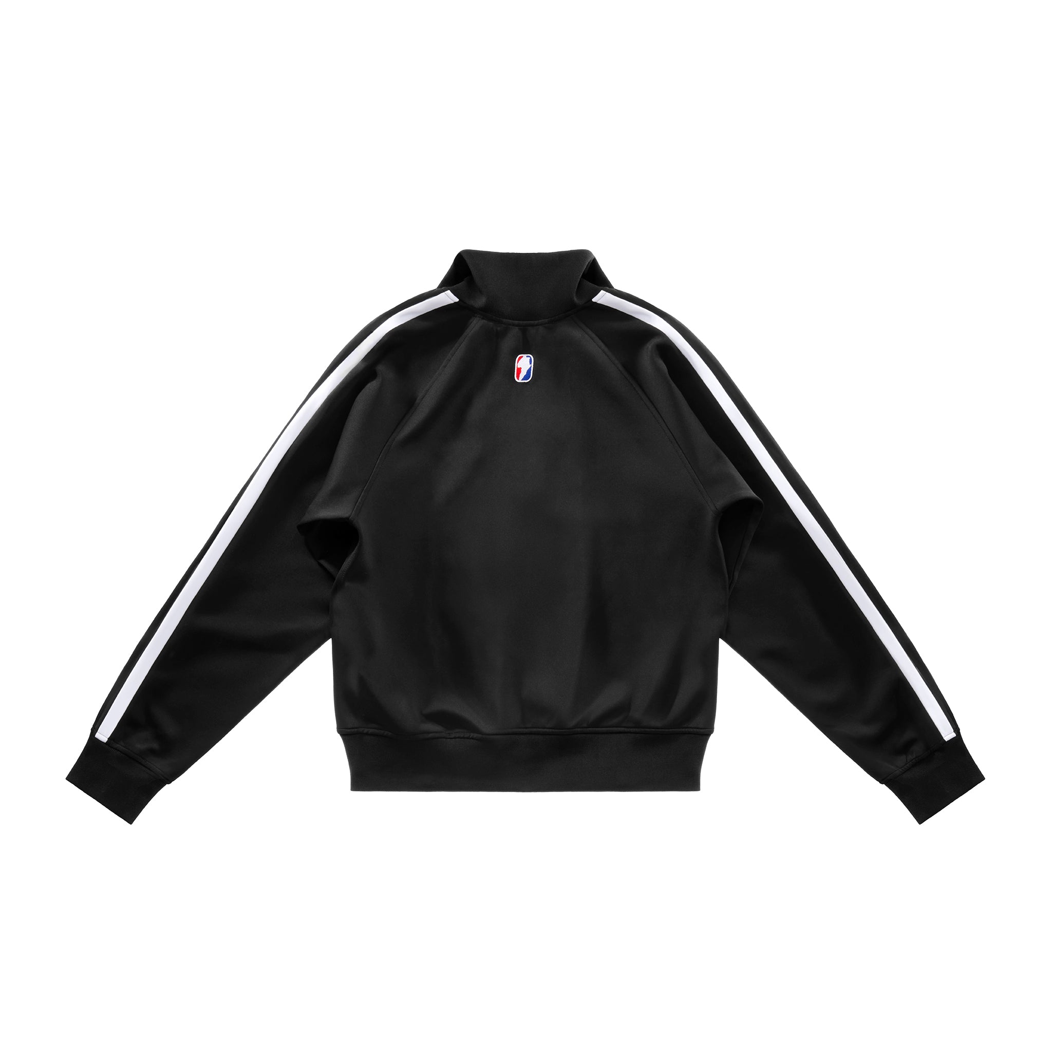 Classic track jacket featuring sculptural stripes on the sleeves, athletic logo embroidery on the chest, logo zipper pull, welt pockets with zipper closures, ribbed collar, cuffs and waistband.