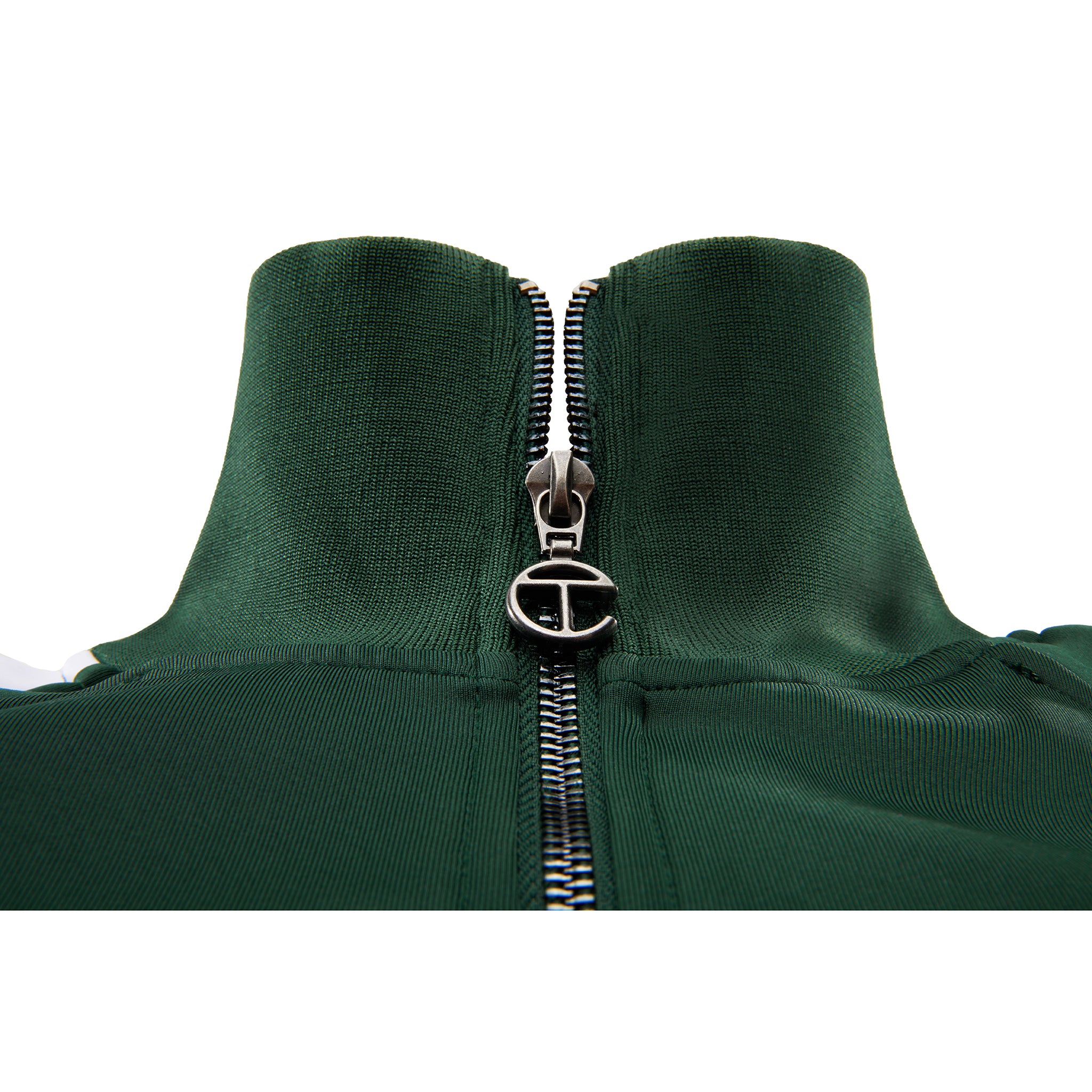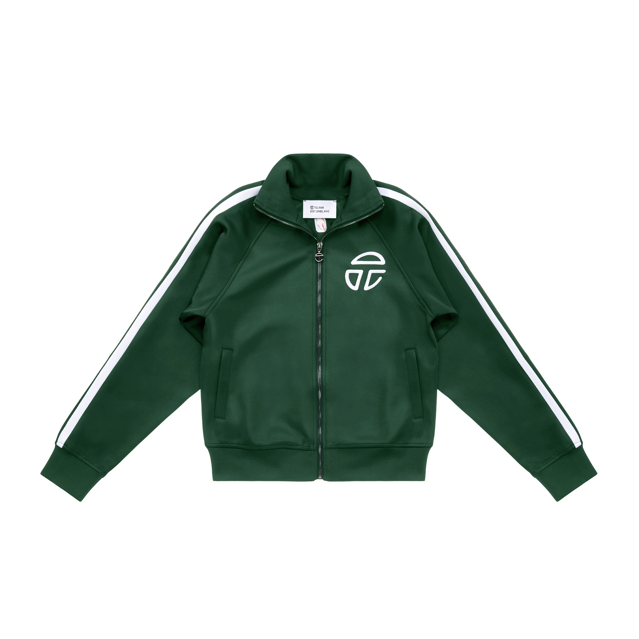 Classic track jacket featuring sculptural stripes on the sleeves, athletic logo embroidery on the chest, logo zipper pull, welt pockets with zipper closures, ribbed collar, cuffs and waistband.