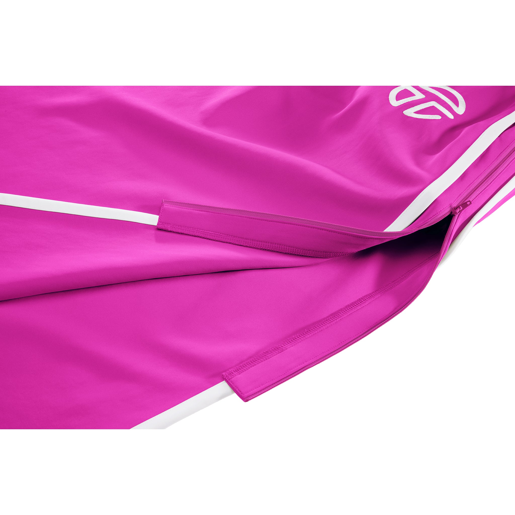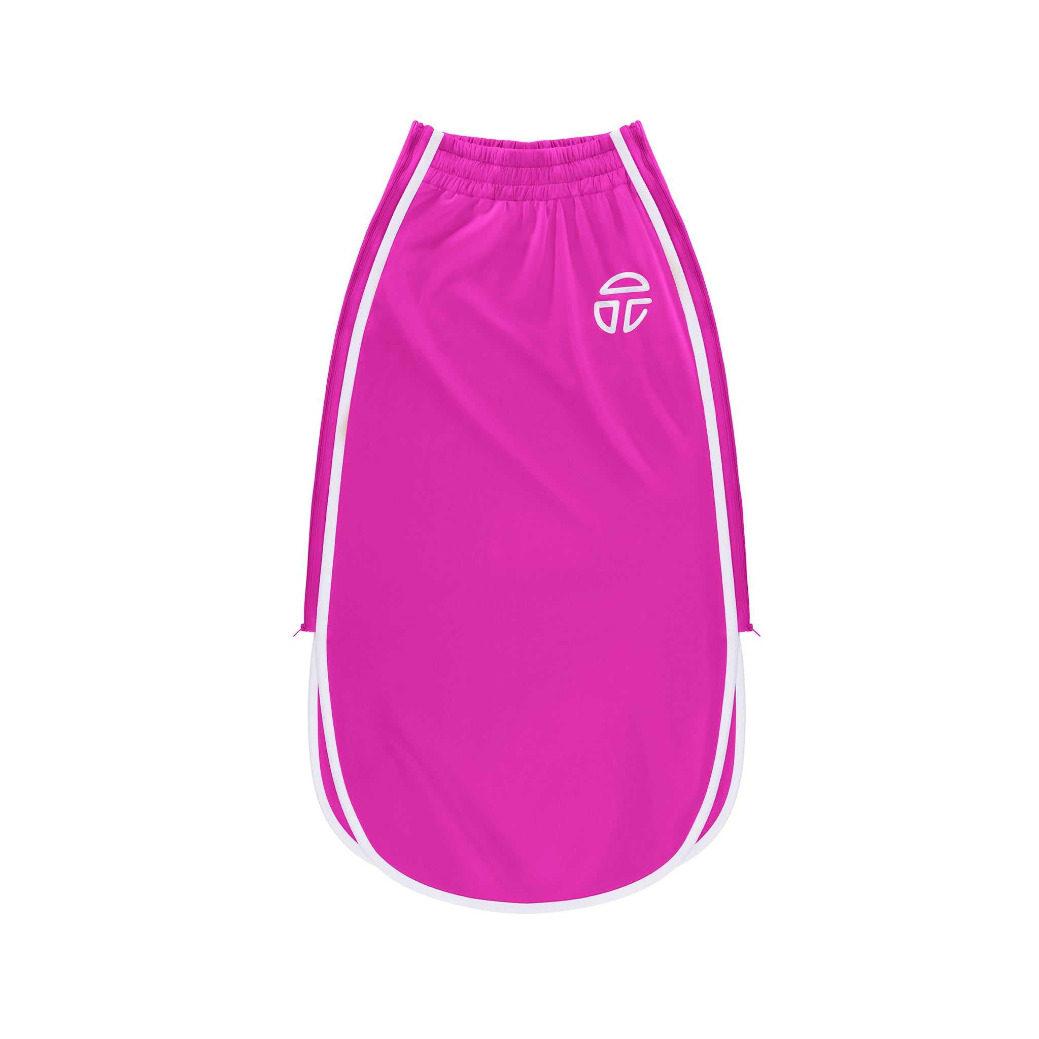 Our Track Long Skirt featuring sculptural stripes, athletic logo embroidery, elastic waist, and hidden zip pockets in front and back with side panels that unzip to fully separate.