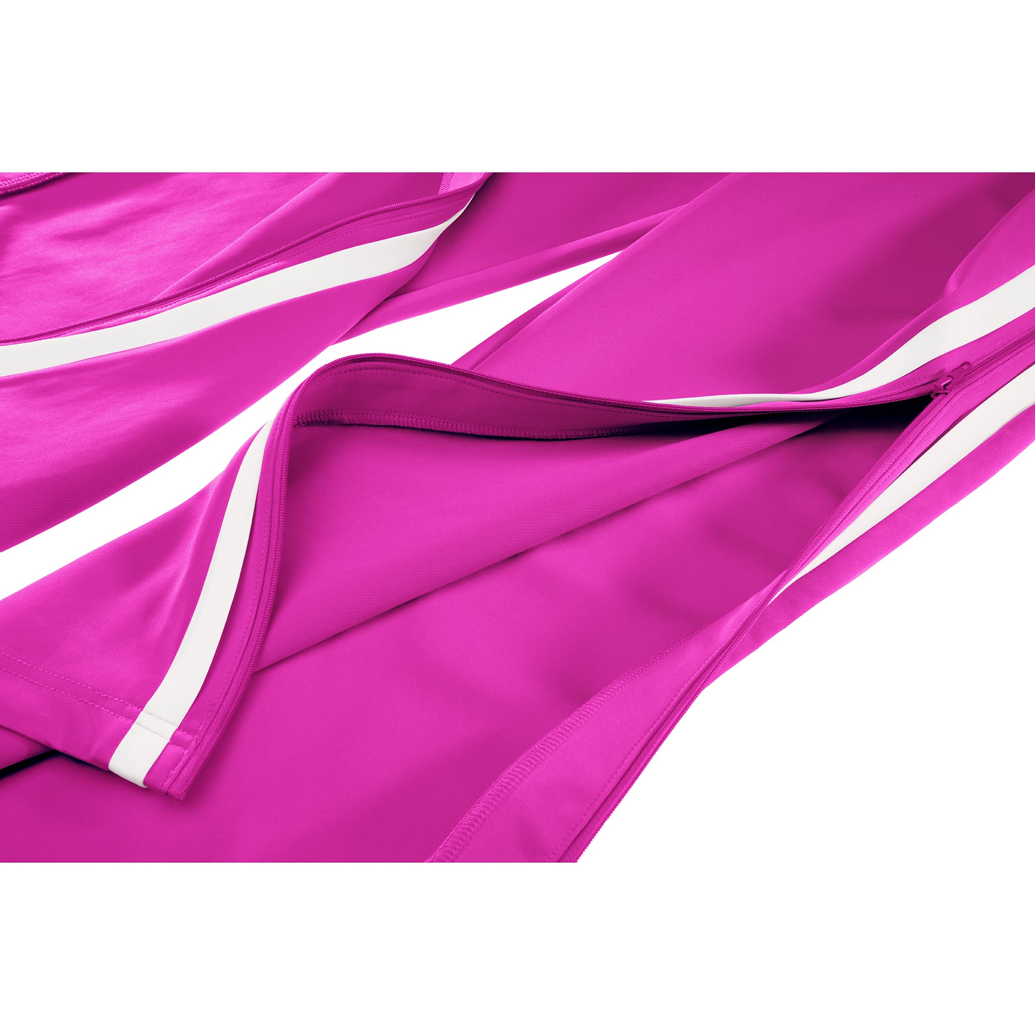 Classic track pant featuring sculptural stripes, adjustable zipper closures at side panel, hidden zip pockets and athletic logo embroidery on the hip.