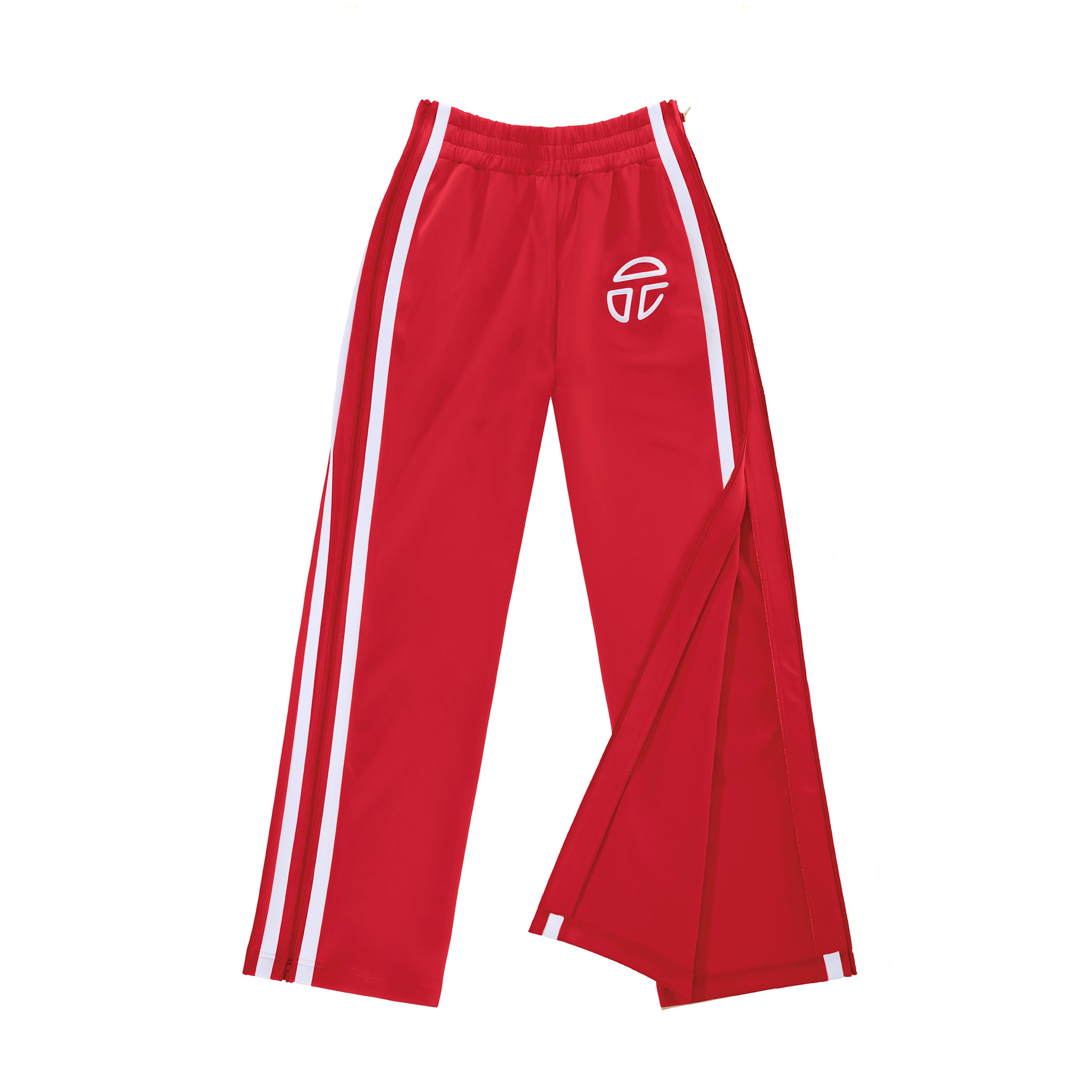 Classic track pant featuring sculptural stripes, adjustable zipper closures at side panel, hidden zip pockets and athletic logo embroidery on the hip.