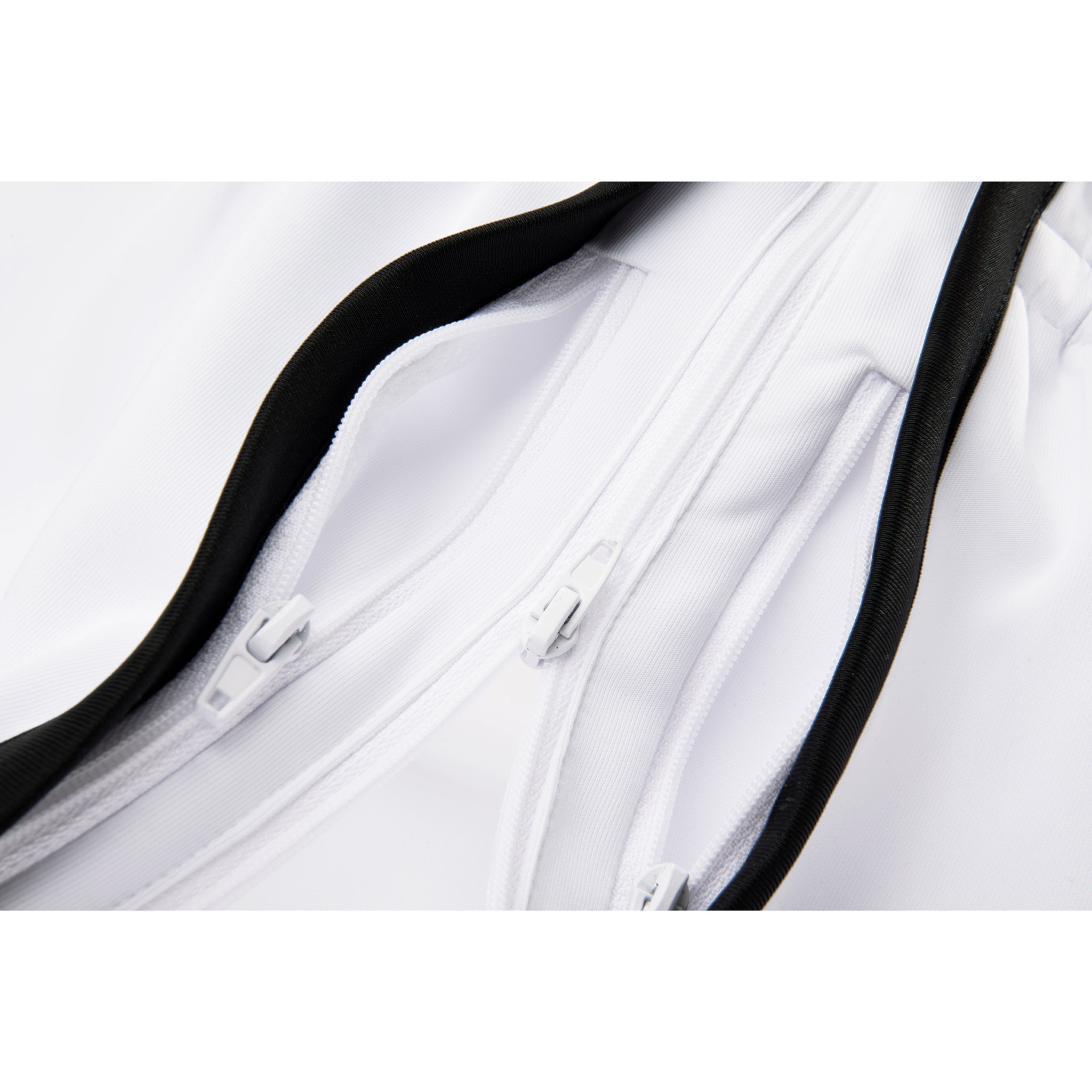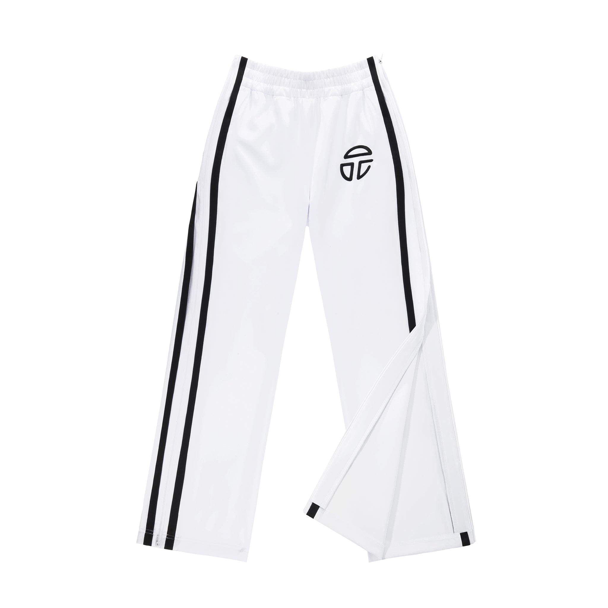 Classic track pant featuring sculptural stripes, adjustable zipper closures at side panel, hidden zip pockets and athletic logo embroidery on the hip.