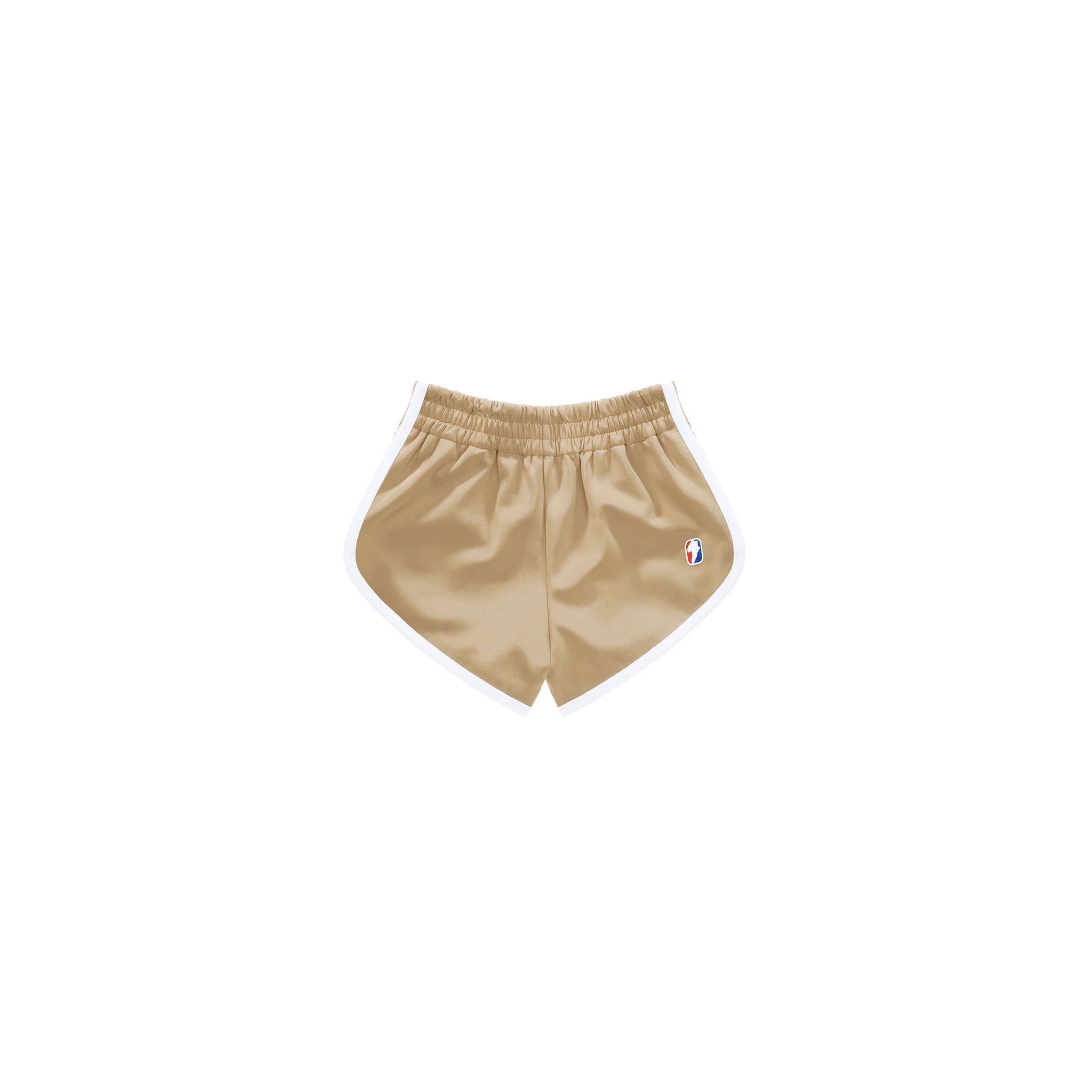 Classic running short featuring sculptural stripes, hidden zip pockets in front and back, full zipper side panels, and athletic logo embroidery on the hip.
