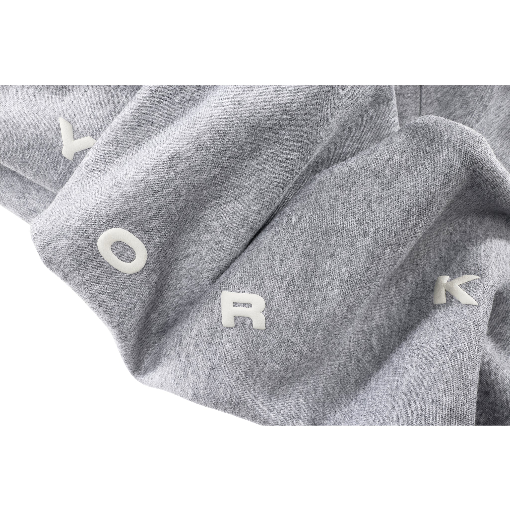 Fleece sweatpant with adjustable drawstring tie closure at the waist. Tonal seams. Hidden slit pockets. Signature silkscreen Afro-sport insignia at the front panel and NewYork insignia at the side. Contrast color block panels. Tapered leg. Available in Black, Grey/Navy, and Green.